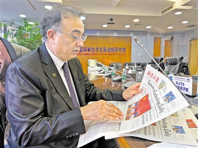 Professor Shahbaz Khan is reading the English Edition of Science and Technology Daily. (PHOTO: Science and Technology Daily)